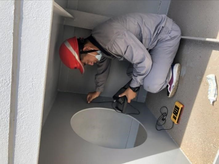 6月8日,该中心检测人员,奋战36℃高温,在烈日下对闸室墙混凝土强度、钢筋保护层厚度、对钢结构腐蚀情况、闸室墙磨损等项目进行检测。