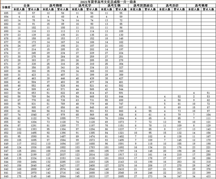 原标题:2021山东高考一分一段表出炉,快看看你在省内排第几?