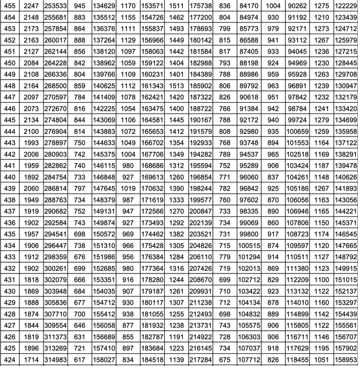 就是每一个分数,在整个山东省有多少名考生。考生在全省排在一个什么位次上,都能通过这个一分一段表看出来。