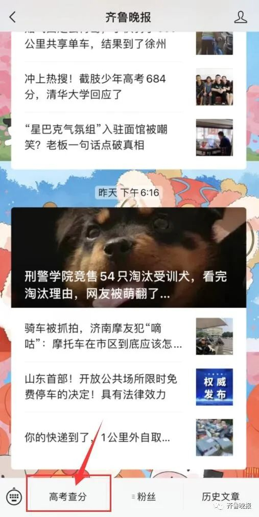 菜单栏点击高考查分