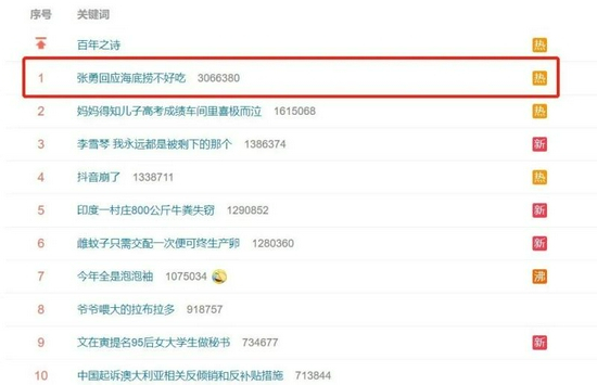 6月24日晚间,#张勇回应海底捞不好吃#的话题直接冲上了微博热搜第一,张勇表示,口味不是太大问题,餐饮业和火箭上天是有差异的,火箭上天有标准,餐饮没有标准,只不过是有些企业强调口味,我们不重视而已。