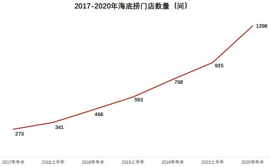从1994年开出第一家店到如今,海底捞已经走过了26年,截至2020年年底,海底捞全球门店的数量已增至1298家。