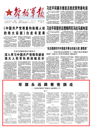 原标题:解放军报刊发解辛平文章:军旗永远跟着党旗走——庆祝中国共产党成立100周年