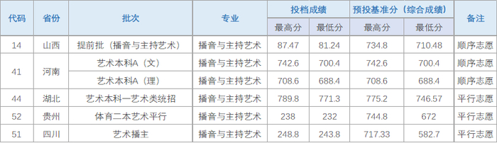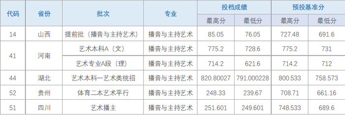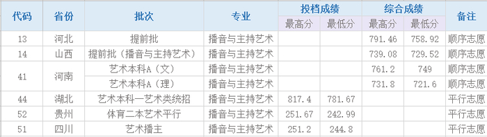 各省播音与主持艺术录取分数统计