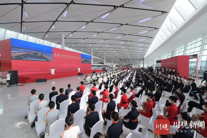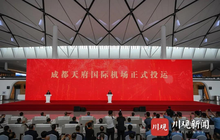 上午10时3分,成都天府国际机场1号航站楼L4层出发大厅,成都天府国际机场投运仪式正式开始。