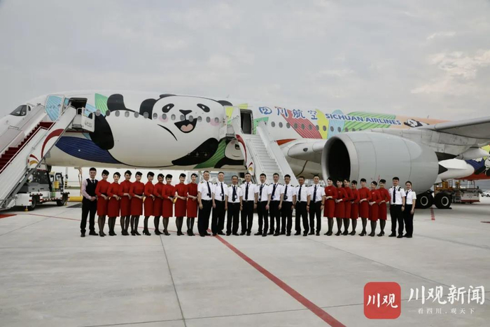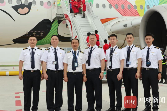 本次首航航班的飞行机组由川航股份公司副总经理施祖球和飞行部党委书记刘彤带队,已成功飞行11000余小时的机长钟华作为本次航班的责任机长,还有一名经验丰富的邓升洪机长和一名优秀的副驾驶张起维。