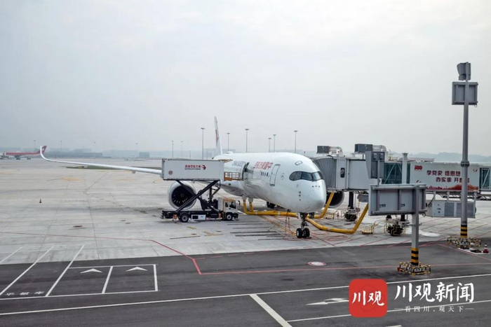 11时10分,成都天府国际机场175机位。编号B-306N的熊猫彩绘涂装A350飞机,缓缓向前移动——前往北京首都机场的川航3U8001航班启程了!