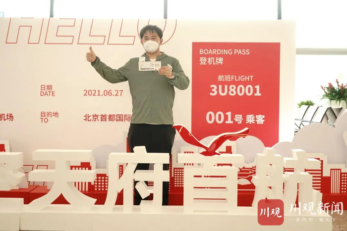 “非常幸运!”旅客胡彬彬激动地说,“尝鲜”天府国际机场首飞,作为四川人,很自豪!