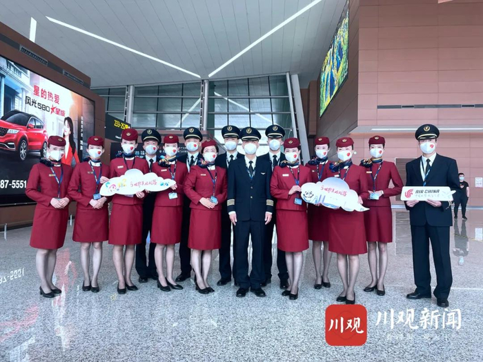 “神鸟启航,四川骄傲。天府新征程,川航新航程。四川航空共祝天府机场首航顺利,共祝中国共产党百年华诞!”