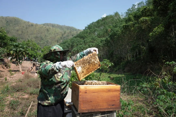 景洪市倒淌箐村紧邻西双版纳国家级自然保护区,在这里推广养蜂项目可以让村民减少因远离村庄农地劳作而遭遇大象的概率。