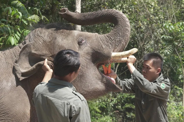 “象爸爸”为救助的亚洲象检查口腔。