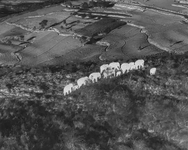 6月13日,无人机拍摄到北移象群在玉溪市易门县十街乡南山村附近活动。