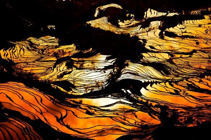 余光照在千块梯田的水面上