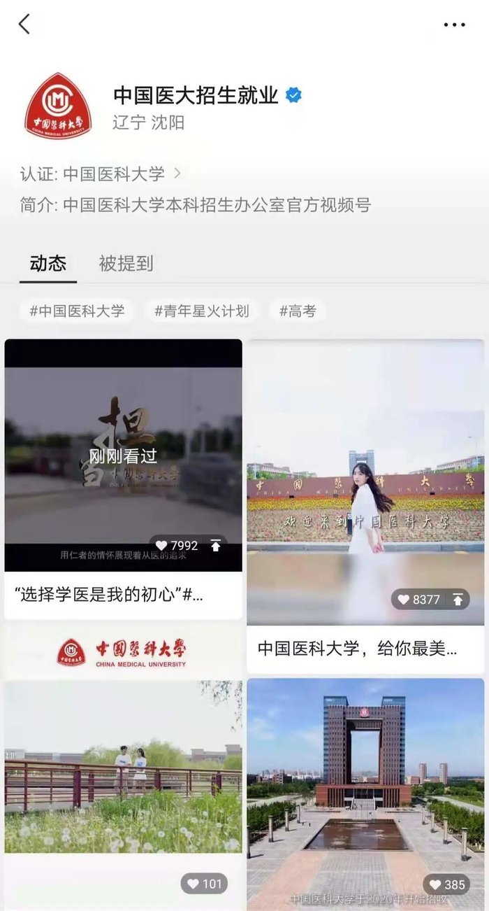 关注“中国医大招生就业”微信视频号