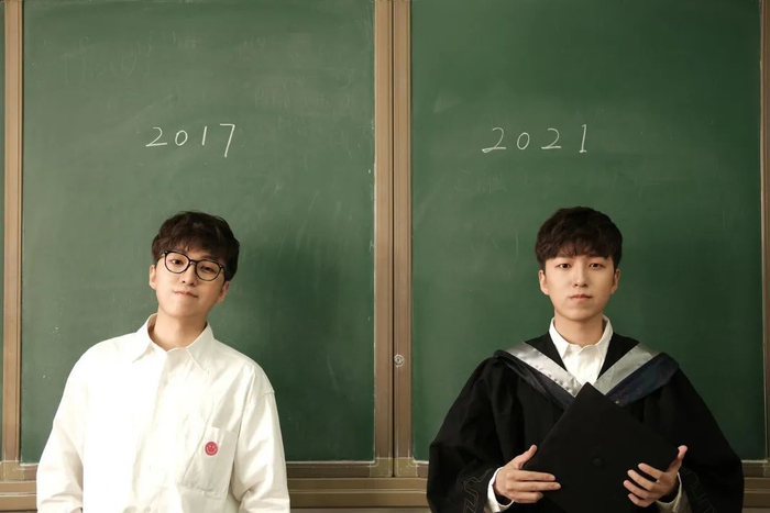 和入学时的自己同框啦。