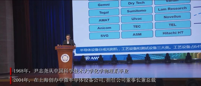 尹志尧毕业于中国科大化学物理系。在上海创办中微半导体设备公司,担任公司董事长兼总裁。中微公司是中国半导体设备领域的一面旗帜,已与中国科大签署合作协议,将共建“中微半导体集成电路英才班”,为我国培养出更多的半导体人才。