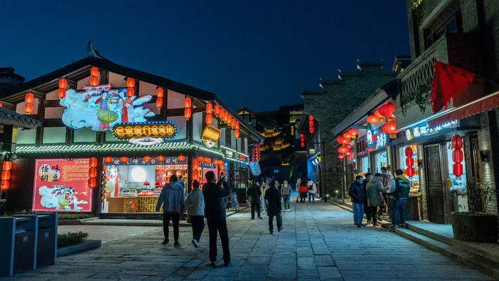 同时,整条街贯穿爬山城、逛老街、品创意三大文化主题动线,将山城人文精神、古镇千年奇趣与城市创新风潮相结合,以丰富全业态开启多元消费体验,24小时全开放不间断,满足各类人群全时段不同消费需求。