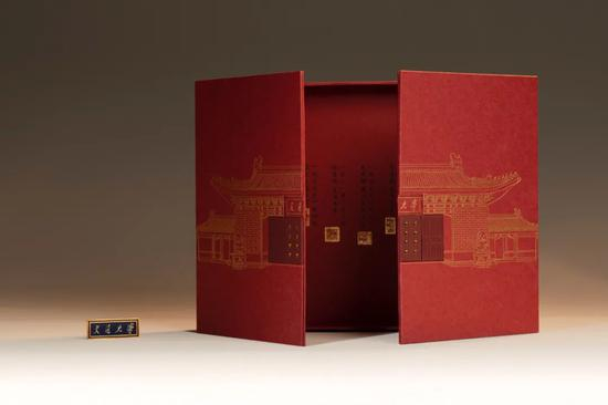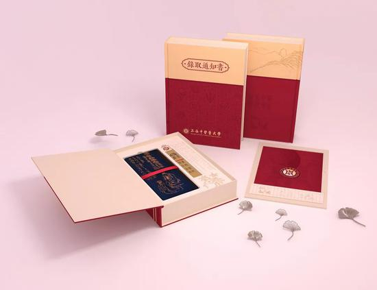 上海中医药大学本科录取通知书礼盒以中国古籍为原型,配以上中医红主色调,庄重典雅,慧心巧思。录取通知书封套融合校徽与阴阳太极元素,采用UV烫金工艺,磁吸相扣,合而为鼎,象征中西合璧、繁荣鼎盛。礼盒内包含了融入“医缓、医和”典故的笔帘和书签入学礼,饱含对莘莘学子的殷殷期盼:以中国共产党百年华诞的历史性时刻为起点,回眸历史,不忘初心,展望未来,为中医药事业的守正创新、传承发展作出贡献。