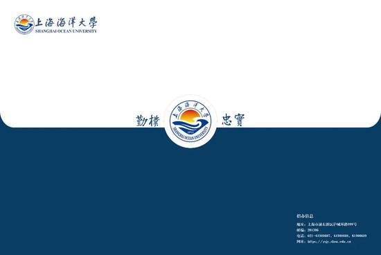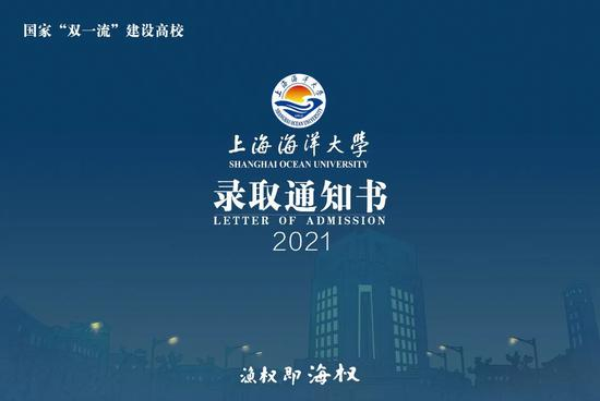 录取通知书以蓝色为基调,寓意星辰大海;通知书封面印着创校先贤张謇的头像、校训“勤朴忠实”和海中畅游的抹香鲸,封底印着国内首艘远洋渔业资源调查船“淞航”号和“从海洋走向世界,从海洋走向未来”的新时代发展使命;引领新生从进校起就牢记创校初心:渔权所至,海权所在,奔赴上海海洋大学激扬青春,投身海洋强国事业。