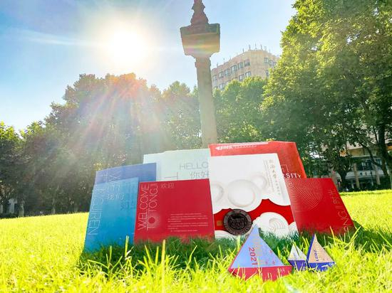 同济大学2021年本科生录取通知书以“乘风破浪”为设计主题。录取通知书里还有3艘小船、可保存200年的时光笔记和“奥利奥”校标等。录取通知书中藏有一份“造船指南”,同学们可以将3张折纸按压痕叠成“同舟号”“共济号”和“梦想号”。希望每一位萌新在同济都能满载期望实现自己的梦想。