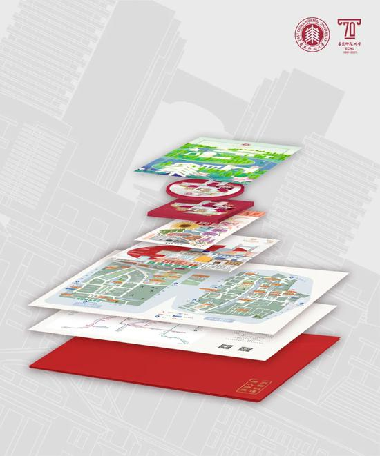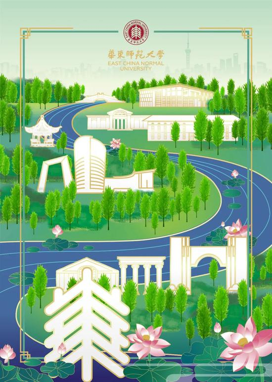 今年恰逢华东师范大学70周年校庆,录取通知书的设计将丽娃河、樱桃河贯穿两校区,犹如师大文脉,一路传承。水杉、莲花作为校树、校花,展现着华东师大人的积极进取,树丛之中,群贤堂、思群堂、大夏亭、文脉廊等特色建筑尽显眼前。愿你在这所校园,成为更好的自己,看到更大的世界。
