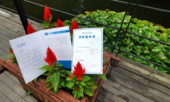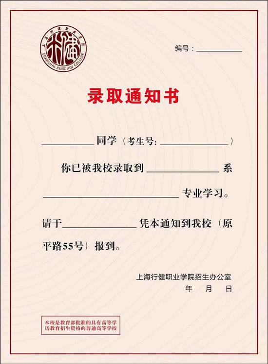 第一份特殊礼物。上海健康医学院的录取通知书由封套和内芯两部分组成。内芯为红色色调,一式两联。封套喜庆红底,正面印有学校校名、校徽、祥云图案及校园素描。背面印有学校校址的示意图,使人感到简约不失大气。当录取通知书打开,启明楼将以3D折叠的方式跃然纸面,楼前鱼儿在池中畅游。承此美景,这个盛夏,期待“荷”你相约上健医!