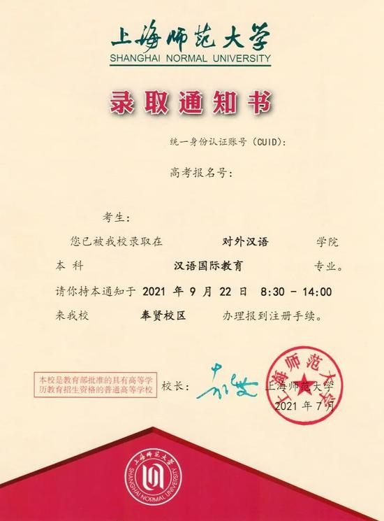 上海师范大学录取通知书,红艳艳的EMS外壳预示着红红火火充满希望的开始。录取通知书背面学位帽的设计预示着新生未来几年为之奋斗的目标,学校校徽、校训、标志性建筑一教彰显着历史的韵味。