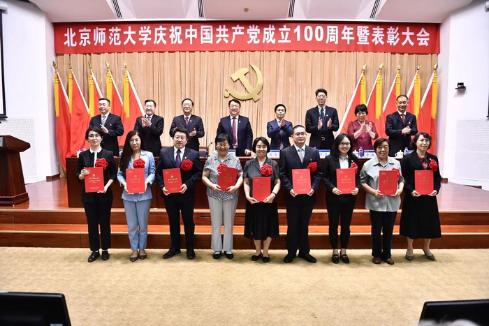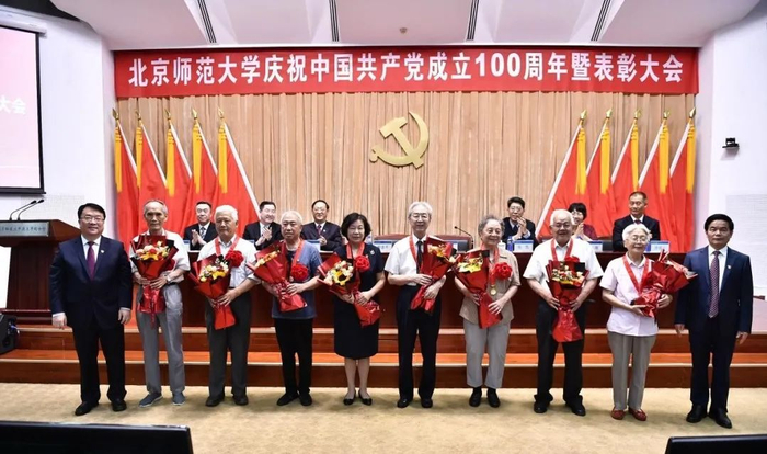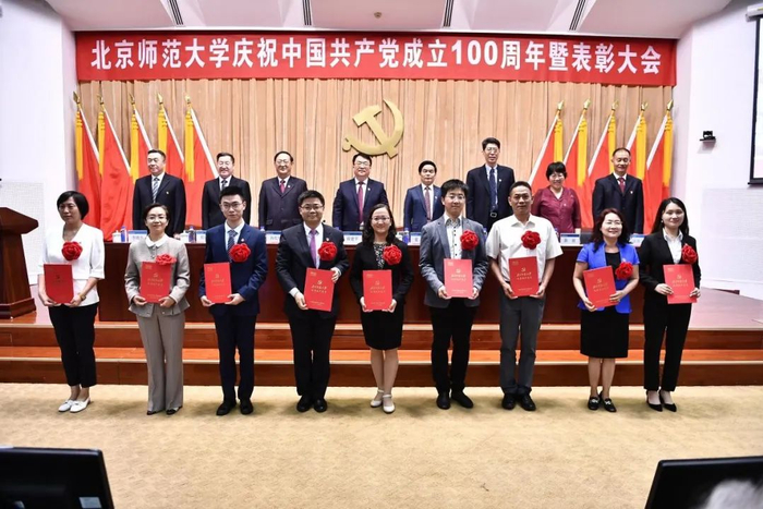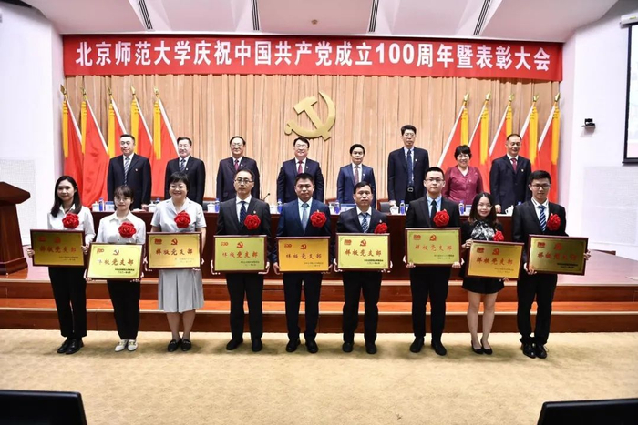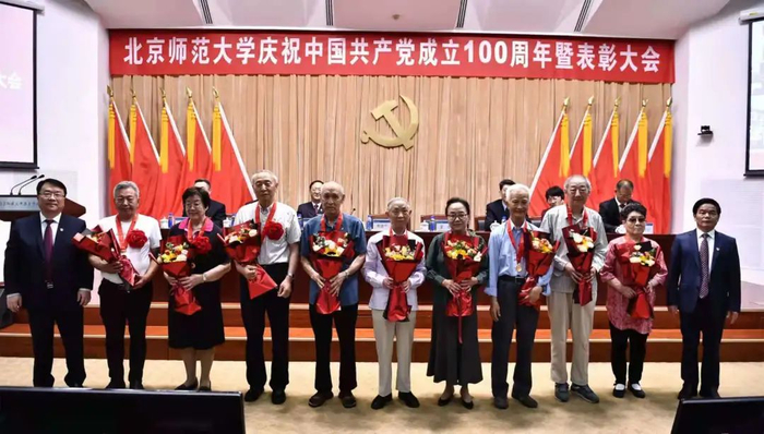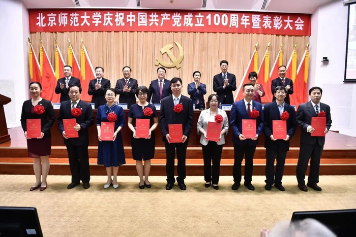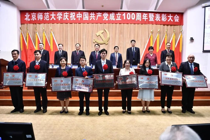 工作人员宣读了学校党委表彰决定,授予9个院系级党组织“北京师范大学先进院系级党组织”称号、71个党支部“北京师范大学先进党支部”称号、321名共产党员“北京师范大学优秀共产党员”(含脱贫攻坚贡献奖)称号、5名院系级党组织书记“北京师范大学优秀院系级党组织书记”称号、10名党支部书记“北京师范大学优秀教职工党支部书记”称号、19名党务工作者“北京师范大学优秀党务工作者”称号。与会校领导为获奖者代表颁奖,为17名老党员代表颁发“光荣在党50年”纪念章。