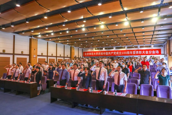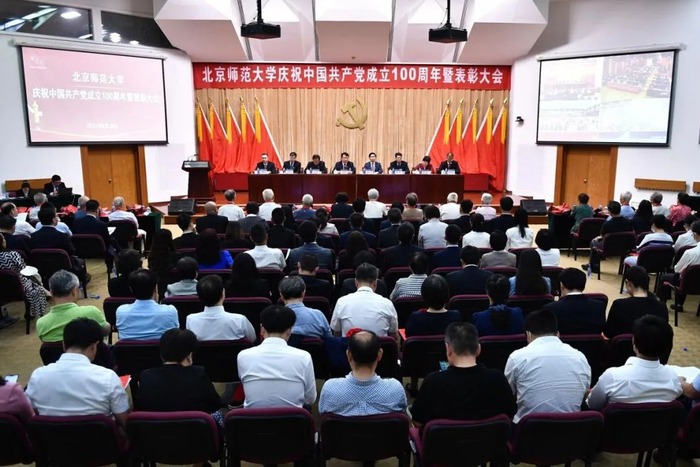 6月28日下午,北京师范大学隆重召开庆祝中国共产党成立100周年暨表彰大会。大会主会场设在英东学术会堂,同时在京师学堂京师厅、图书馆三楼报告厅和珠海园区设三个分会场。校党委书记程建平,党委副书记、校长董奇,党委副书记、纪委书记孙红培,副校长张凯、周作宇、陈丽,党委副书记李晓兵,副校长涂清云出席会议。副校长王守军在珠海园区分会场出席会议。学校党委委员、纪委委员,党代会代表,中层干部正职、党口部门副职,民主党派负责人代表,师生党员代表,离退休党员代表,新党员和入党积极分子代表等500余人参加大会。会议由董奇主持。