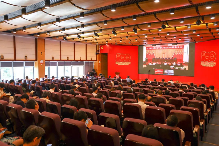 程建平代表学校党委向受到表彰的先进集体、优秀个人以及老党员表示崇高的敬意,向全校共产党员和党务工作者致以节日的问候,向为学校改革、发展、建设付出辛勤劳动的全校师生员工表示衷心的感谢。他回顾了中国共产党不忘初心使命、砥砺奋进前行,所走过的100年的光辉历程。他指出,100年来,北师大始终与党和国家同呼吸、共命运,是当之无愧的“红色师范”。他强调,进入中国特色社会主义新时代,学校要坚持以习近平新时代中国特色社会主义为指导,切实提升政治站位,站在“国之大者”的高度,聚焦国家赋予北师大的神圣使命,聚焦立德树人核心任务,切实加强新时代党的建设,全面深化学校综合改革,以实际行动为建党100周年献礼。