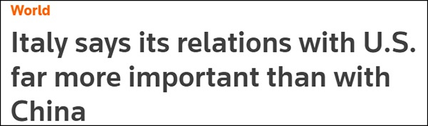 报道称,身为G7成员国的意大利主动进入“中国的势力范围”,显然极大地震动了美国政府。