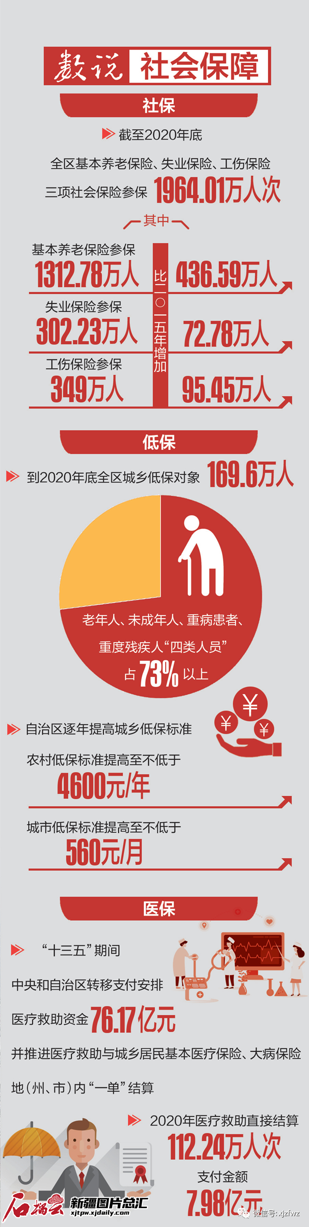 医疗保障事关群众健康福祉,是全面建成小康社会的重要民生指标。党的十八大以来,新疆持续推进医保惠民工程,打造多层次、全方面的医疗保障体系,“兜”民生底线,“保”病有所医,让新疆各族群众生活更幸福、更美好。