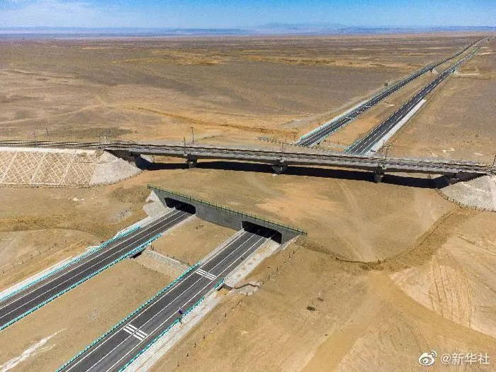 设计及施工过程中,相关单位兼顾生态环保和地方经济发展。中铁一院京新高速公路总设计师王晓智说,为方便相关区域动物迁徙,施工方共设计62处动物迁徙通道,其中包括两处铁路桥在最上方、动物迁徙通道位于中间、高速公路在最下方的三层立体交叉通道。