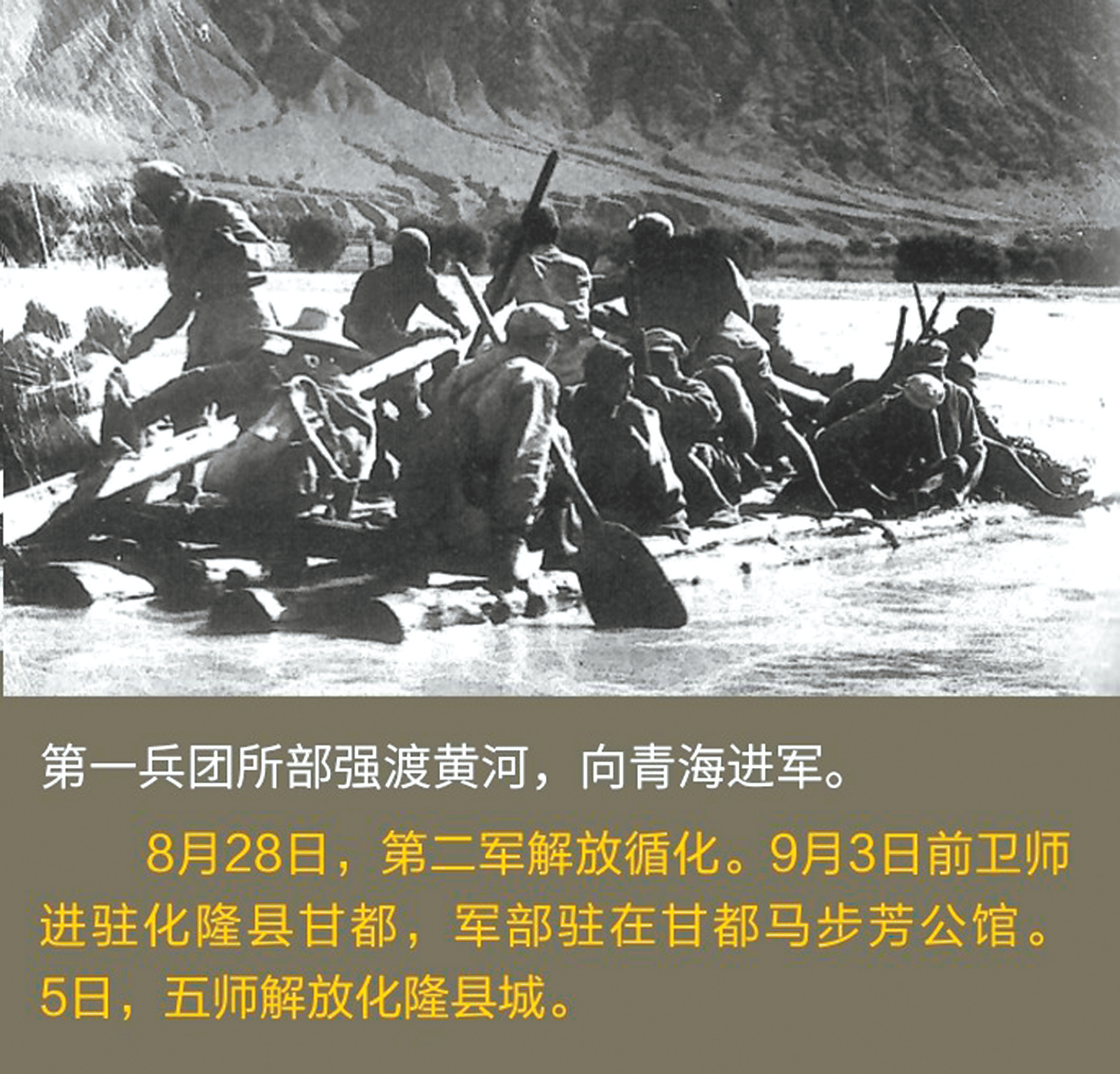 兰州解放后,第一野战军分兵三路:左路向青海,中路向河西走廊,右路向宁夏方向进军,以期迅速解放大西北。