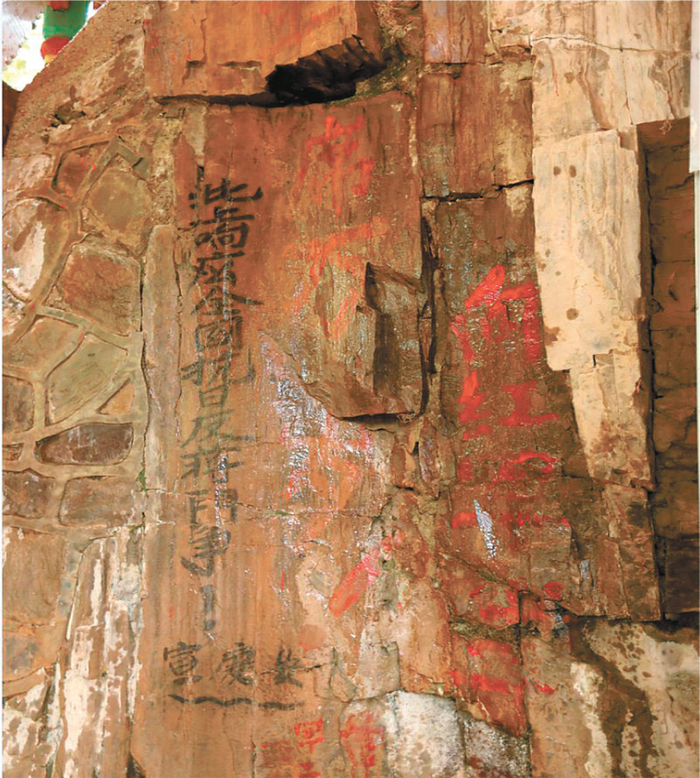红军战士在子木达沟口的石壁上写下的“北上响应全国抗日反蒋斗争”的标语。
