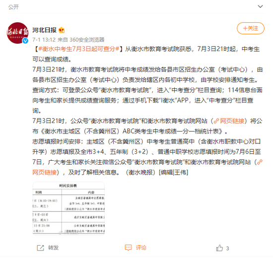 从衡水市教育考试院获悉,7月3日21时起,中考生可以查询成绩。