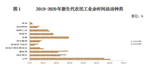 自我提升类活动减少。业余时间参加学习培训、读书看报的新生代农民工占比分别为3.8%和7.6%,比上年同期分别下降2.5个和1.3个百分点。