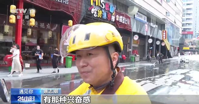 姚志刚:送餐跟我以前消防兵救火的那种感觉差不多,救火警铃一响马上出发,第一时间赶到火场把火灭掉。像送餐,接到单也是第一时间及时把餐送到顾客手里,在规定的时间内送到顾客手里。我很享受这种感觉,可能你们感觉不到,特别是爆单的时候。