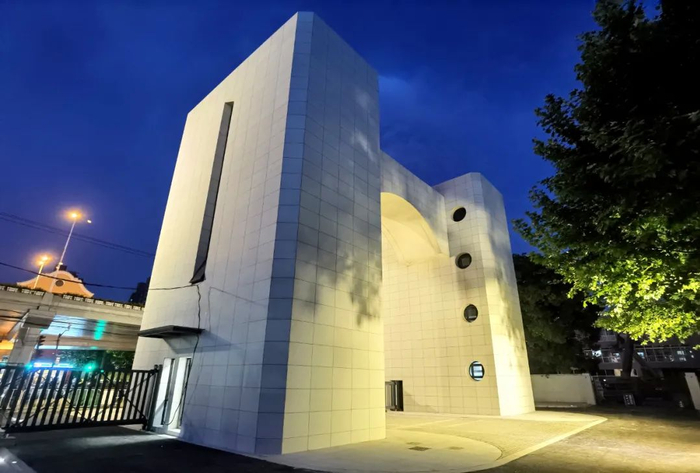 具体而言,首先,在修缮校门主体时,加固主体结构,重新铺设外立面材料。选取比原校门石材亮度略高的花岗岩材料,调整石材尺寸和模数,以明亮清爽的崭新面貌示人。
