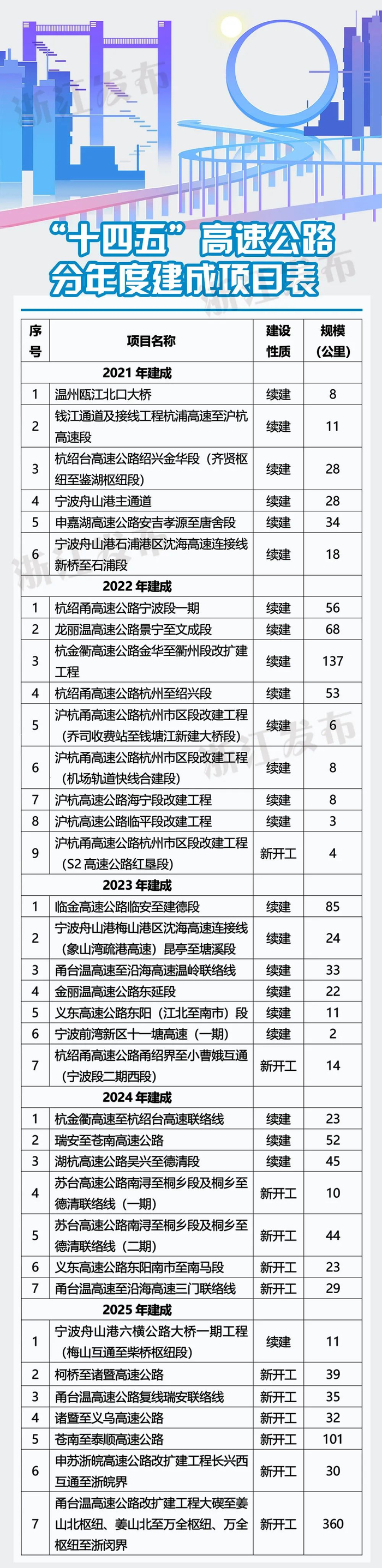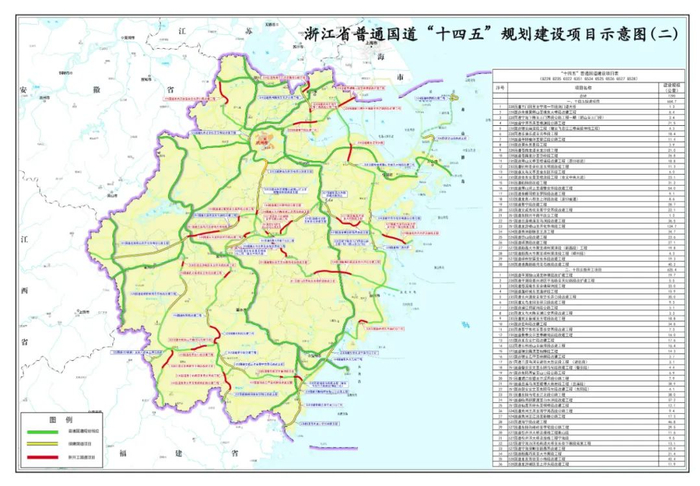 “十四五”期间,浙江高速公路、普通国省道和农村公路的建设重点为: