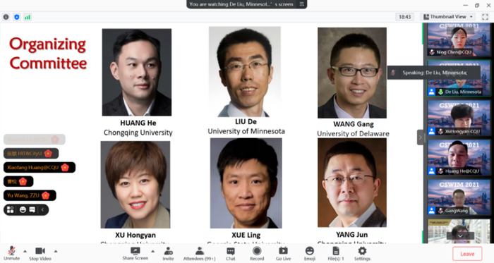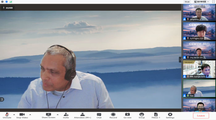 CSWIM 2021由重庆大学黄河教授、明尼苏达大学De Liu教授、特拉华大学Gang Wang教授、重庆大学徐鸿雁教授、佐治亚州立大学Ling Xue教授以及重庆大学杨俊教授担任组委会成员。会议共收到学术论文83篇,其中60%来自于中国大陆,27%来自于美国,13%来自于香港、新加坡、澳大利亚、加拿大、英国等。经专家评审后,51篇论文分别在十六个平行分会场作了报告,每篇论文均由大会安排资深学者进行详细点评。会议期间,由黄河教授团队17名硕博士生组成的会务组为大会提供了高效的服务及管理工作,得到了与会专家的一致好评,也为重庆大学组织大型线上国际学术会议提供了良好的管理和组织经验。