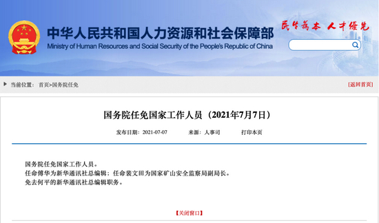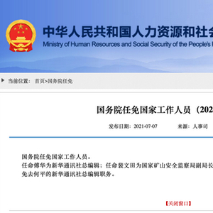据人社部官网7日消息,国务院任免国家工作人员:任命傅华为新华通讯社总编辑,免去何平的新华通讯社总编辑职务。