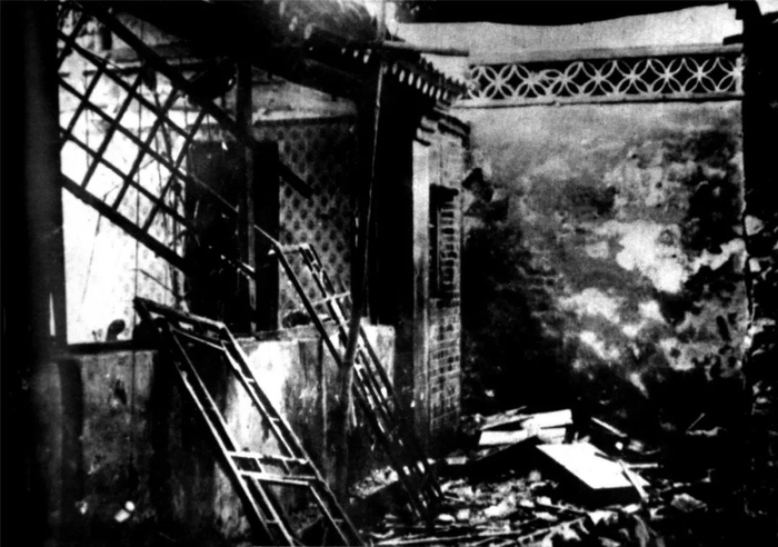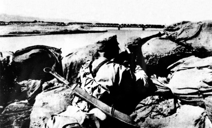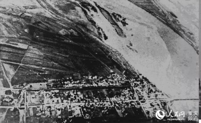 日军空中拍摄的卢沟桥及宛平县城图(右斜上方为永定河)