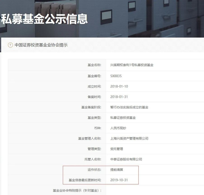 中基协官网备案信息显示,兴盾资产上述产品已经归零。“作为普通投资者,也还算是朋友介绍的,对基金管理人和托管机构都是非常信任的,谁没事会去中基协查询,当时真不知道已经提前清算了。”孟杨说。
