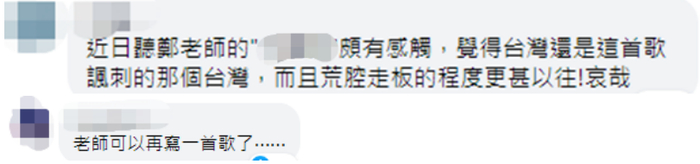 1993年,郑智化曾创作歌曲,对台湾社会状况提出犀利的批评。有网友在上述帖文下留言中也提到了这首歌说,“近日,觉得台湾还是这首歌讽刺的那个台湾,而且荒腔走板的程度更甚以往!哀哉。”还有人建议,“可以再写一首歌了……”↓