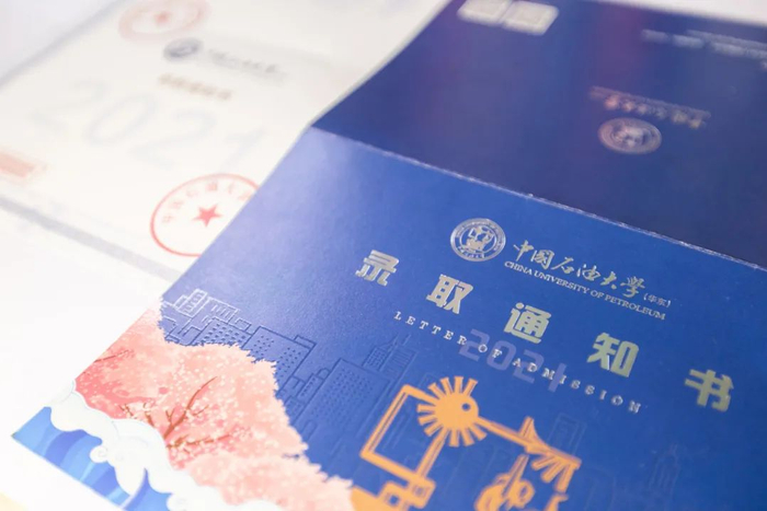 2021年中国石油大学(华东)的录取通知书,采用了“视觉立体”式的结构布局,质感较往年有所提升。