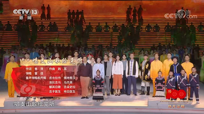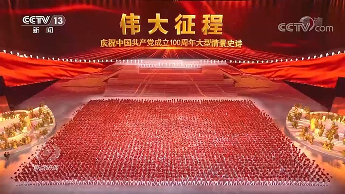 在《伟大征程》的演出中,还有很多经典的瞬间值得我们再一次回顾,比如《开国大典》上演时,大屏幕上毛主席抬头的瞬间正好就看到了夜空当中绽放的烟花;再比如说,在5G技术的支持下三位航天员聂海胜、刘伯明、汤洪波从遥远的太空发来了祝福……还有,整场晚会中使用到的经典旋律就有30多部。这是对中国共产党百年历程的全景反映,它展现的是一个个的历史片段,也是一座座的精神丰碑,激励人心,照亮未来。