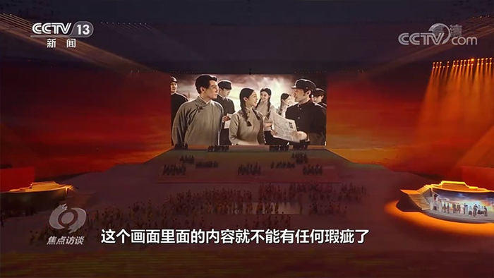 承接了大屏任务的视频组,在不到40天时间里,完成制作5个先导片、7条领导人的视频、17条背景视频、110多个场景。数百人参与创作、收集调取素材资源超过500小时,4K修复和彩色修复历史影像资料超过两小时。