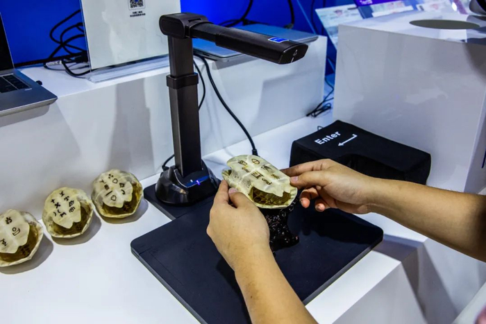 当天,合合信息展台引来观展者围观,该公司工作人员演示,通过智能文字识别技术,识别出3600年前中华文明的古老文字——多块复刻在仿制龟甲上形象丰富的甲骨文,只需一扫码,“甲骨文”即可同步被提取与翻译:“白富美”、“买它买它”等网络热词被识别翻译出来。目前这一技术处于内测阶段并首次在人工智能大会上展示,安阳殷墟景区作为这一技术的学术支持单位。