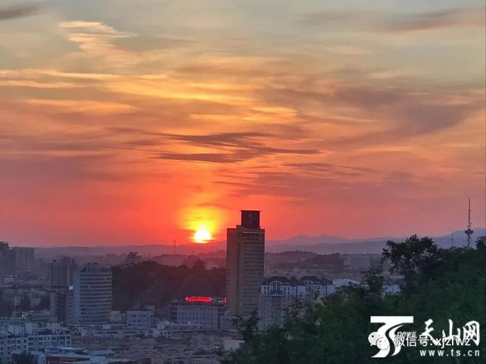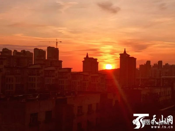 7月9日早晨,一轮红日从乌鲁木齐东边天际冉冉升起。 天山网-新疆日报记者张万德 摄